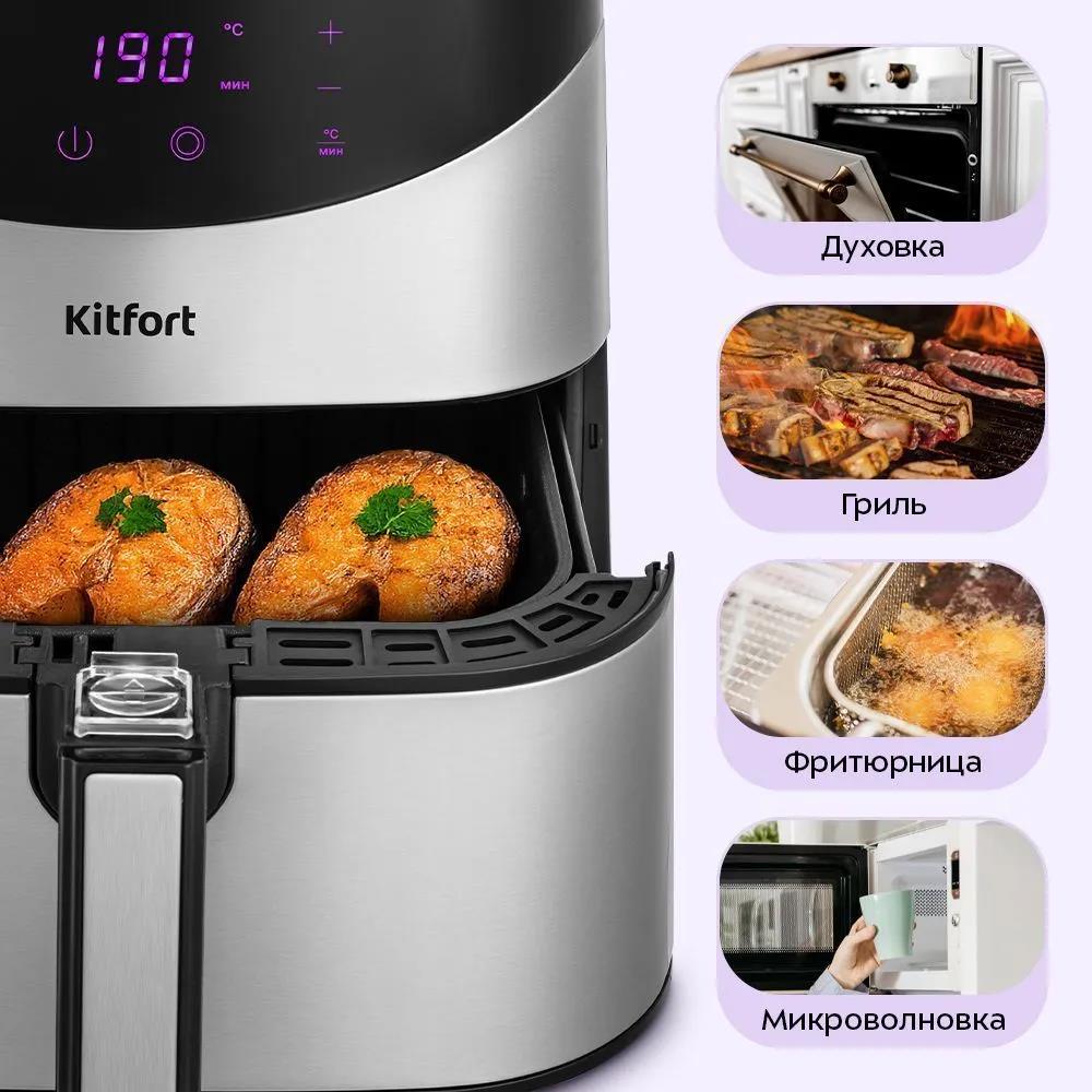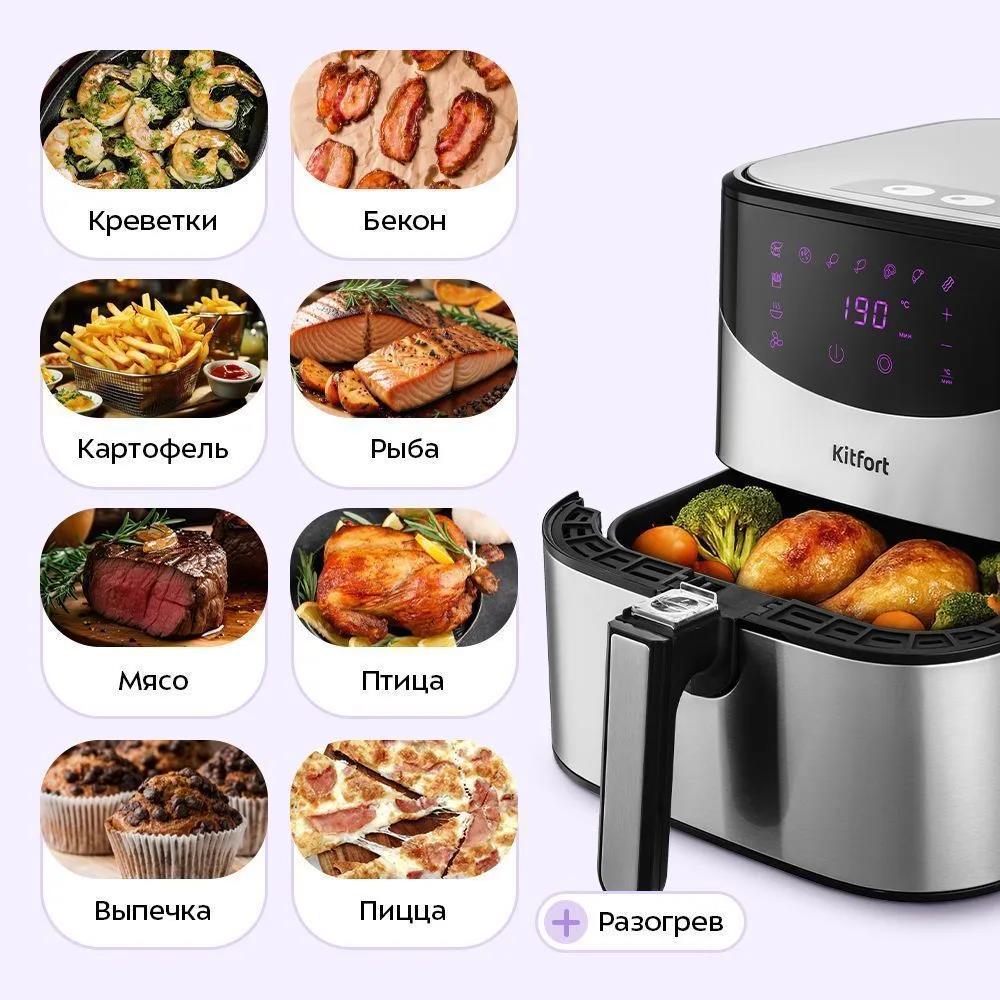 Аэрогриль Kitfort KT-2231 серый, 1700 Вт, сенсор, 9 программ (1700 Вт /5,5 л ) - Интернет-магазин Позитив: бытовая техника, электроника, товары для дома и др.