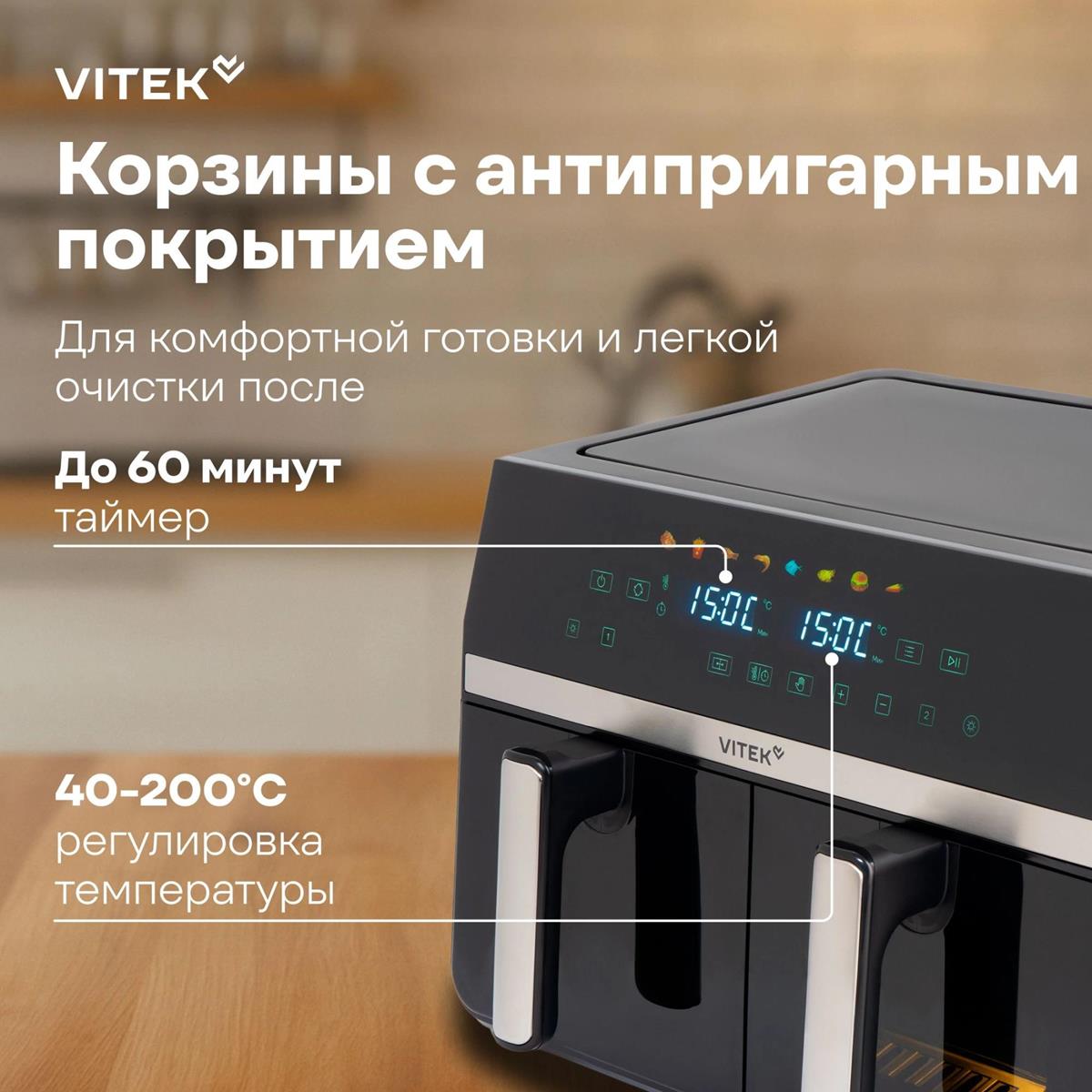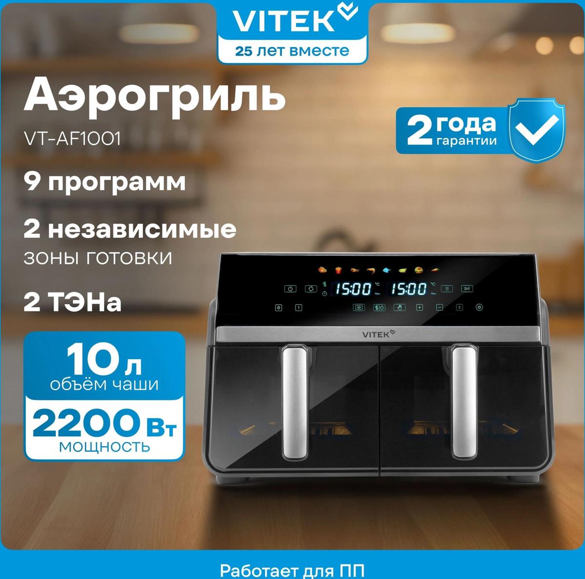 Аэрогриль VITEK VT-AF1001 2400Вт черный/серебристый (2400 Вт /10 л ) - Интернет-магазин Позитив: бытовая техника, электроника, товары для дома и др.