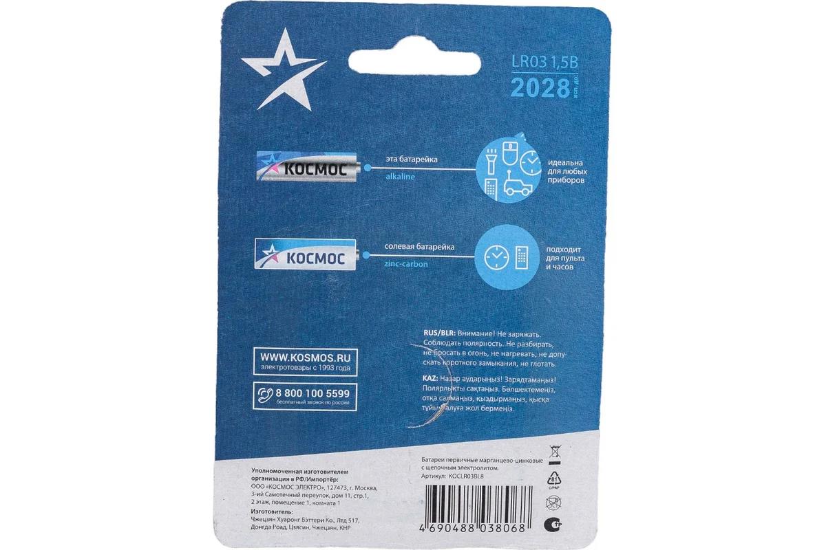 Батарейка Космос KOCLR03BL8 серебро/голубой (ААА (R03;LR03;FR03) 1,5 В щелочная (алкалиновая)) - Интернет-магазин Позитив: бытовая техника, электроника, товары для дома и др.