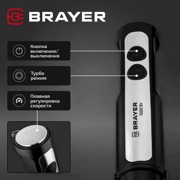 Блендер Brayer BR1263 (погружной/1500 Вт/черный, стальной) - Интернет-магазин Позитив: бытовая техника, электроника, товары для дома и др.
