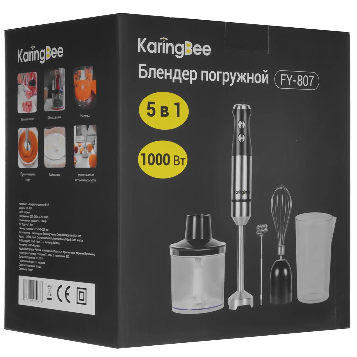 Блендер KaringBee FY-807 (погружной/1000 Вт/серебристый, черный) - Интернет-магазин Позитив: бытовая техника, электроника, товары для дома и др.