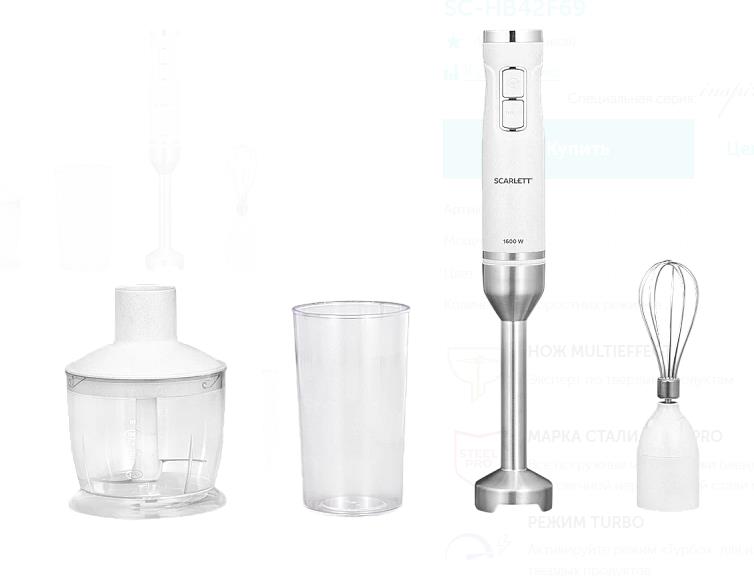 Блендер Scarlett SC-HB42F69 гранит (погружной/1600 Вт/) - Интернет-магазин Позитив: бытовая техника, электроника, товары для дома и др.