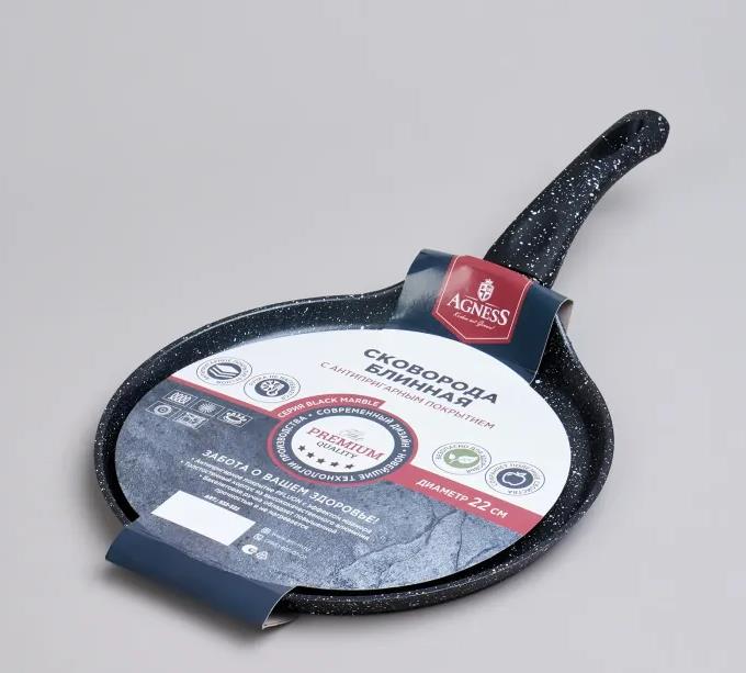 Блинная сковорода AGNESS "BLACK MARBLE", 22Х2СМ, ИНДУКЦИОННОЕ ДНО 932-522 (22 см ) - Интернет-магазин Позитив: бытовая техника, электроника, товары для дома и др.