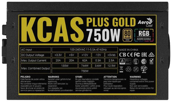 Блок питания AeroCool KCAS PLUS GOLD 750W (4710562759211) (750 Вт )