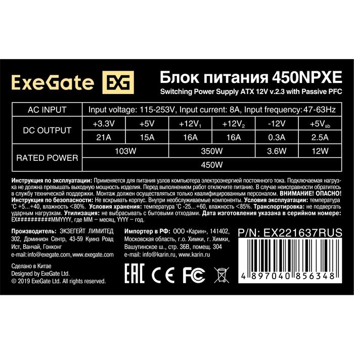 Блок питания ExeGate 450NPXE (EX284686RUS) (450 Вт )