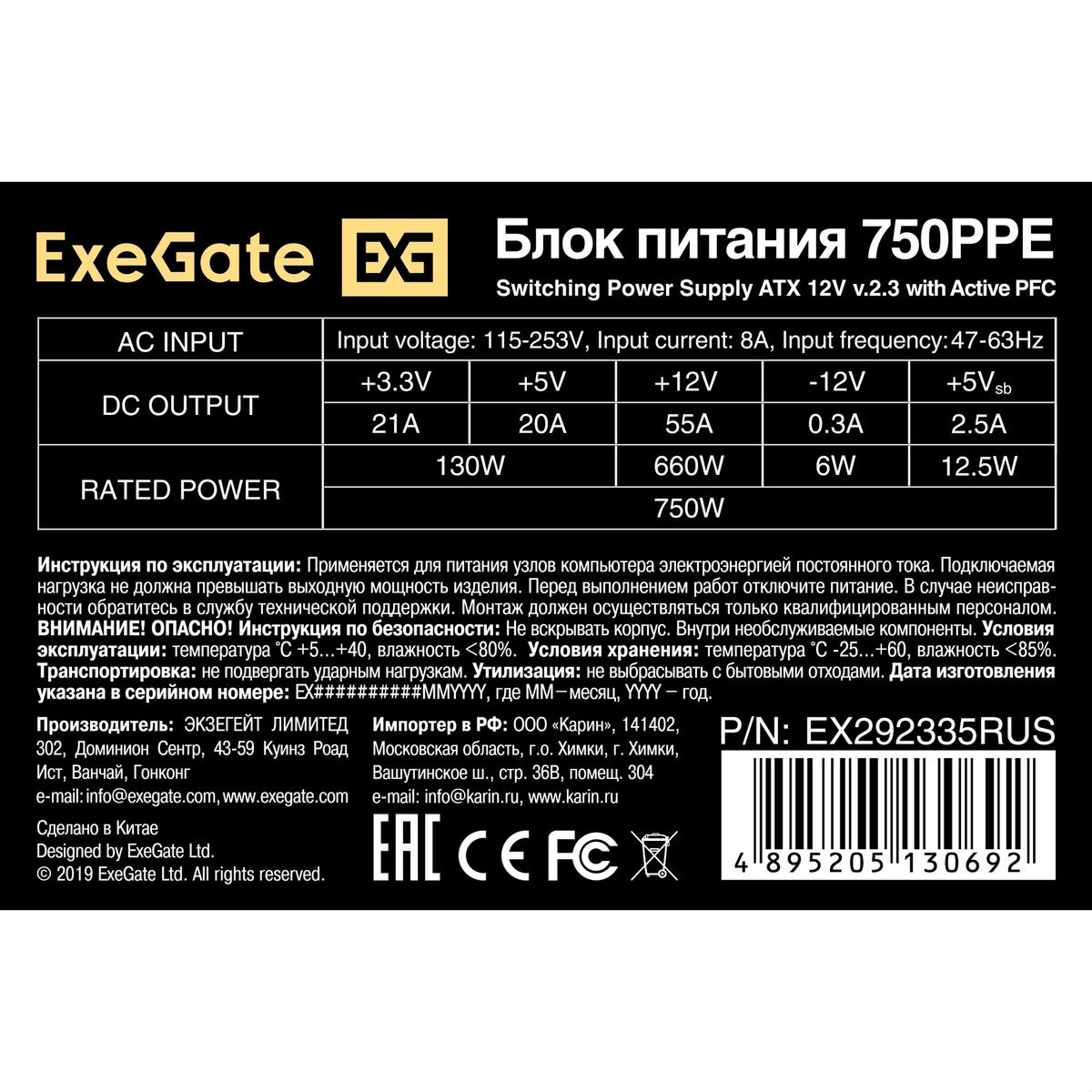 Блок питания ExeGate 750PPE (EX292335RUS-PC) (750 Вт )