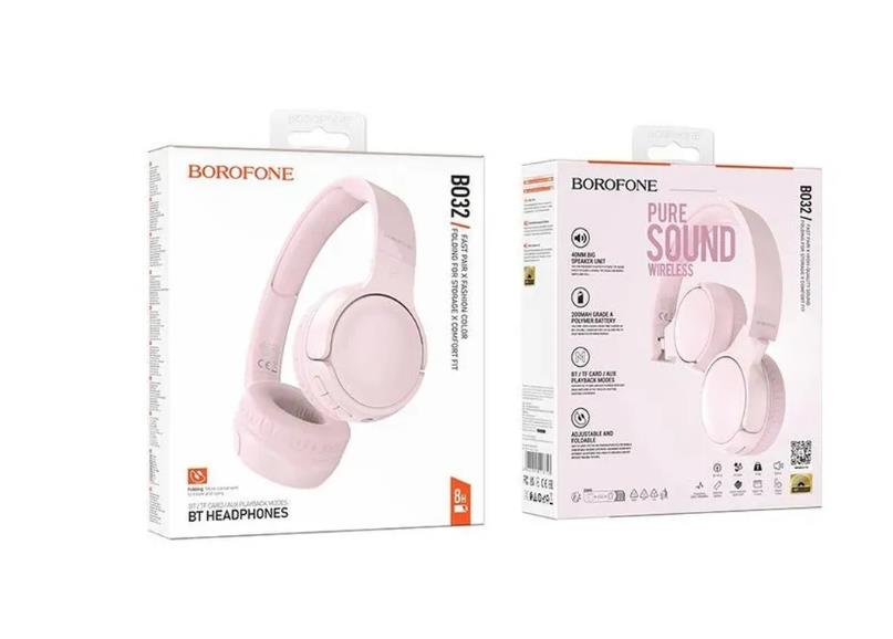 Bluetooth-гарнитура/наушники BOROFONE BO32 Pink (розовый)