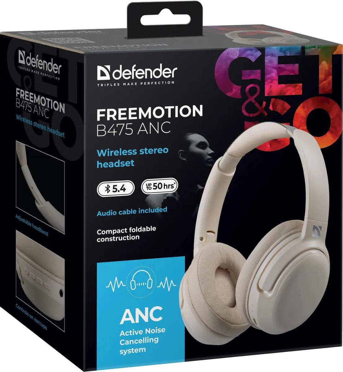 Bluetooth-гарнитура/наушники Defender FreeMotion B475 ANC, ANC, Bluetooth (бежевый) - Интернет-магазин Позитив: бытовая техника, электроника, товары для дома и др.