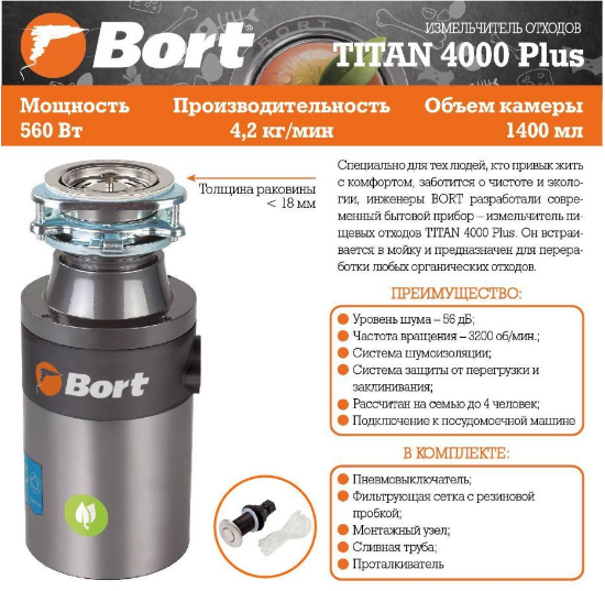 BORT TITAN 4000 PLUS Измельчитель пищевых отходов - Интернет-магазин Позитив: бытовая техника, электроника, товары для дома и др.