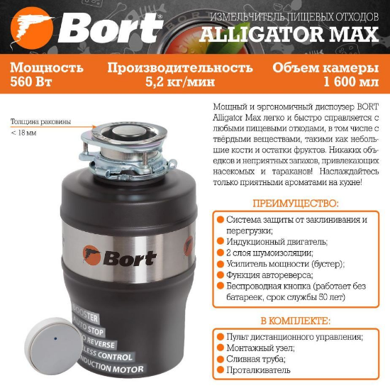 BORT Waste disposer Alligator Max (93410778) - Интернет-магазин Позитив: бытовая техника, электроника, товары для дома и др.
