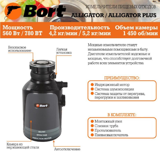 BORT Waste disposer Alligator Plus (93410761) - Интернет-магазин Позитив: бытовая техника, электроника, товары для дома и др.