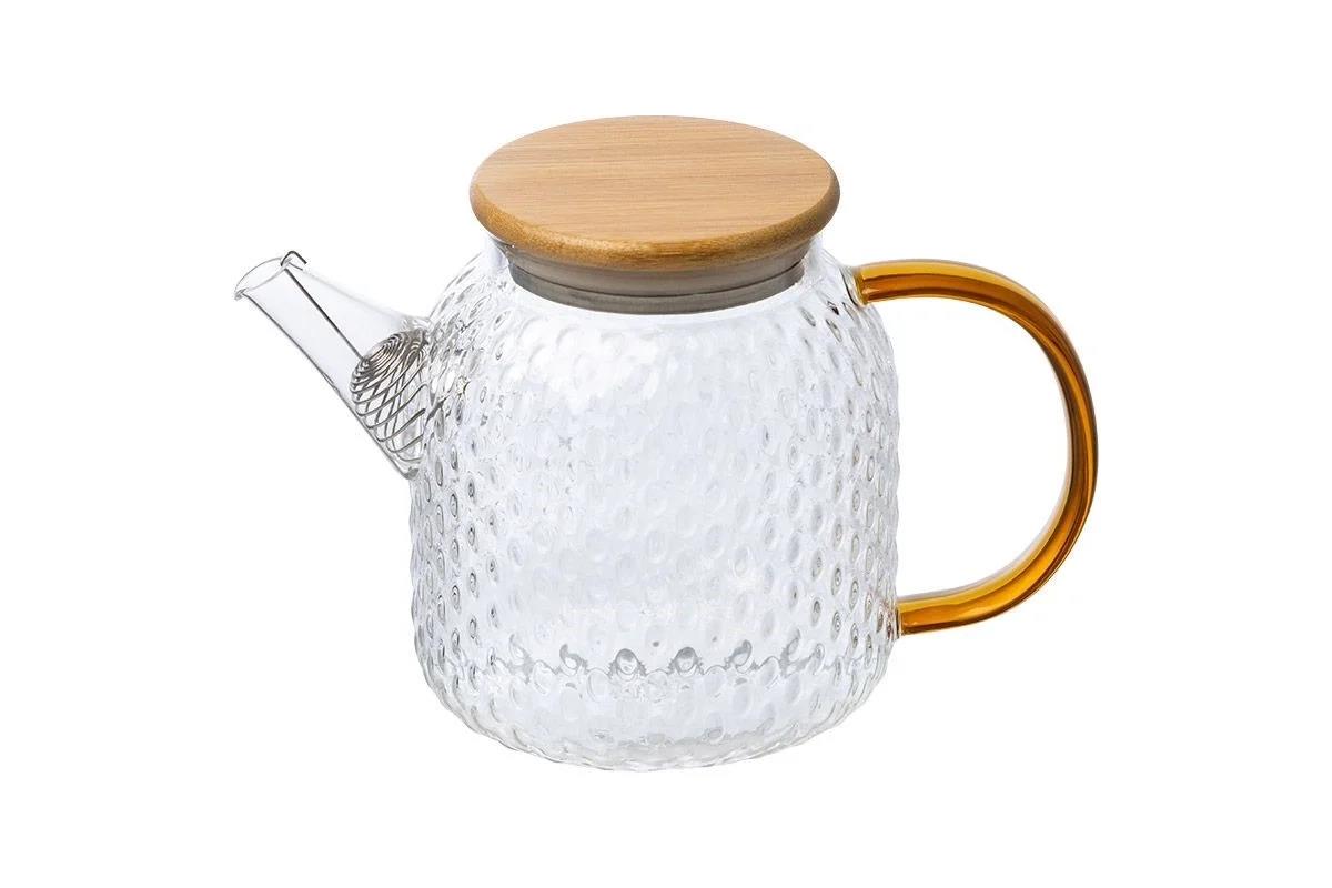 Чайник заварочный Leonord AROMA, объем 1 л, из боросиликатного стекла с рельефом, крышкой бамбука (золотистый, прозрачный/1 л ) - Интернет-магазин Позитив: бытовая техника, электроника, товары для дома и др.