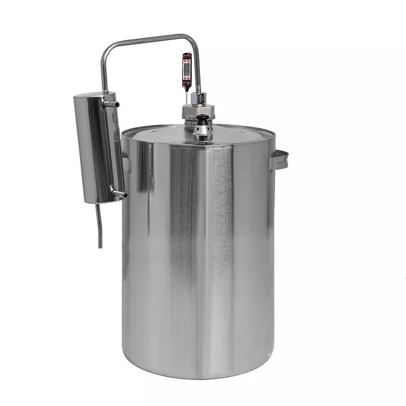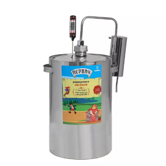 Самогонный аппарат Эконом 16Т станет отличным помощником в этом нелегком, но увлекательном занятии. Дистиллятор предназначен для получения качественного крепкого напитка. Он подходит для использования на газовых и электрических плитах. В комплектации товара силиконовые шланги, термометр и спиртомер, проточный охладитель. Самогонный аппарат изготовлен из пищевой нержавеющей стали. Объем перегонного куба – 16 л. Мы уверены в качестве наших дистилляторов, поэтому предоставляем на них год гарантии. Самогонные аппараты ТМ «Первач» оснащены узлом автоматического сброса избыточного давления. Высота куба: 42 см. Тип охлаждения: проточное. Получаемая крепость: 40-60.
