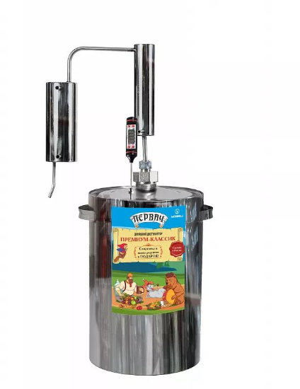Дистиллятор – устройство для домашнего использования, все компоненты которого произведены из высококачественных материалов. Модели необходим всего час, чтобы осуществить переработку двух литров жидкости. Основной бак устройства вмещает не менее 20 литров жидкости, которая отправляется в гофрированный шланг-охладитель для последующей конденсации. Благодаря встроенному термометру и клапану Вы сможете контролировать уровень давления в данном дистилляторе. Для нагревания устройства сгодится любой внешний источник – подойдет даже стандартная газовая плита. Основная емкость модели произведена из качественной стали, а в ходе изготовления стыков устройства использовалась аргоновая сварка, благодаря которой дистиллятор не подвержен коррозии.