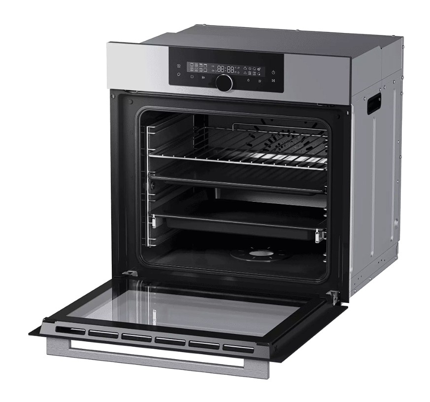 Духовой шкаф HOQ-F6QSN3GG имеет современную сенсорную панель управления с многофункциональным поворотным переключателем и встроенный парогенератор. Использование пара при запекании мяса, рыбы, овощей сделает блюда более сочными, а выпечку более пышной. Для выпечки хлеба вам нужно только запустить нужный вариант программы для целой буханки или для небольших булочек, и расстойка теста, а затем выпекание хлеба до готовности пройдет полностью в автоматическом режиме. Данная модель способна поддерживать температуру нагрева с точностью до одного градуса, что позволяет готовить даже на низких температурах от 30 градусов. Приготовление под вакуумом при низкой температуре активно используется профессионалами высокой кухни, а теперь эта функция стала доступна для использования дома: такой режим помогает максимально сохранить полезные вещества и при этом раскрыть вкус продукта. Максимальная температура нагрева этой духовки составляет 300 градусов, благодаря чему можно приготовить идеальную пиццу с сочной начинкой и хрустящей основой. Режим Аэрогриль можно использовать для блюд с хрустящей корочкой и меньшим содержанием жира, как в аэрогриле. С духовым шкафом HOQ-F6QSN3GG ваши блюда выйдут на высочайший уровень, а специальная программа Аква очистки и каталитические панели на стенках духовки помогут легко поддерживать чистоту даже при частом использовании.