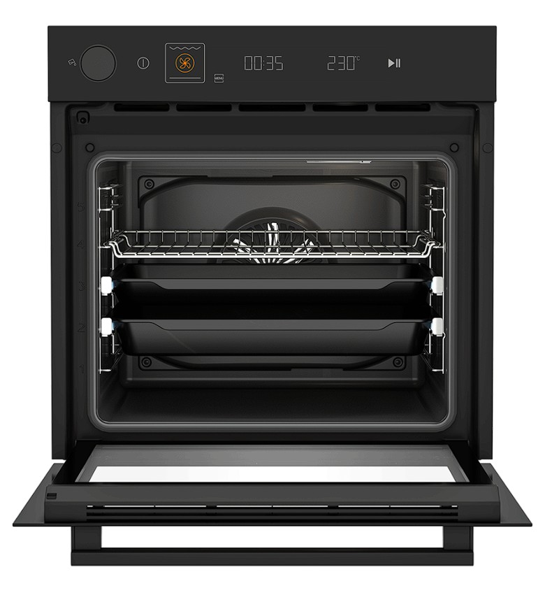 Hotpoint HSTF 1352 H BL — это современный независимый электрический духовой шкаф черного цвета, сочетающий большой объем камеры (72 л) и продвинутые технологии приготовления, включая функции аэрогриля и пара.