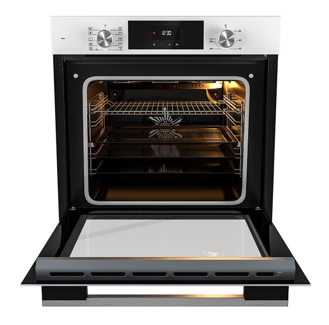 Духовой шкаф MEO 6004 WH белого цвета с конвекцией оснащен мощным вентилятором, который располагается на задней стенке внутренней камеры. Подобное конструкционное решение позволяет обеспечить равномерную циркуляцию горячего воздуха внутри рабочей зоны, исключая вероятность пригорания блюд в процессе их приготовления.