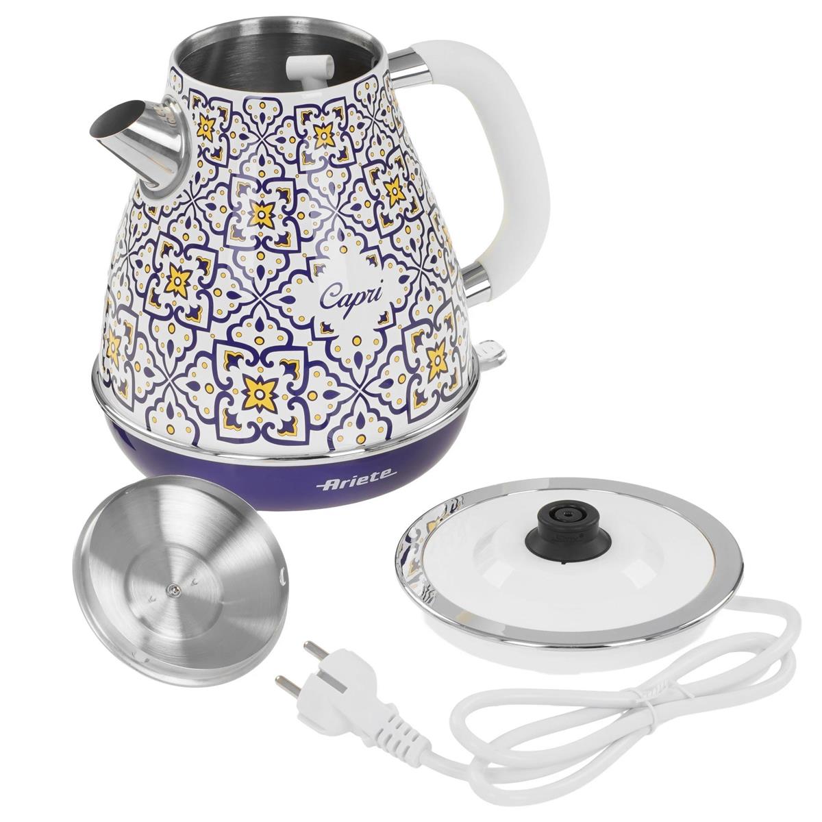 Электрический чайник Ariete 2869/0C Capri (2200 Вт/1,7 л /металл, пластик/синий, белый, рисунок) - Интернет-магазин Позитив: бытовая техника, электроника, товары для дома и др.