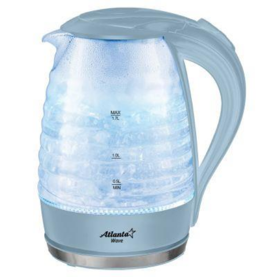 Электрический чайник Atlanta ATH-2467 (2200 Вт/1,7 л /стекло, пластик/голубой, прозрачный)