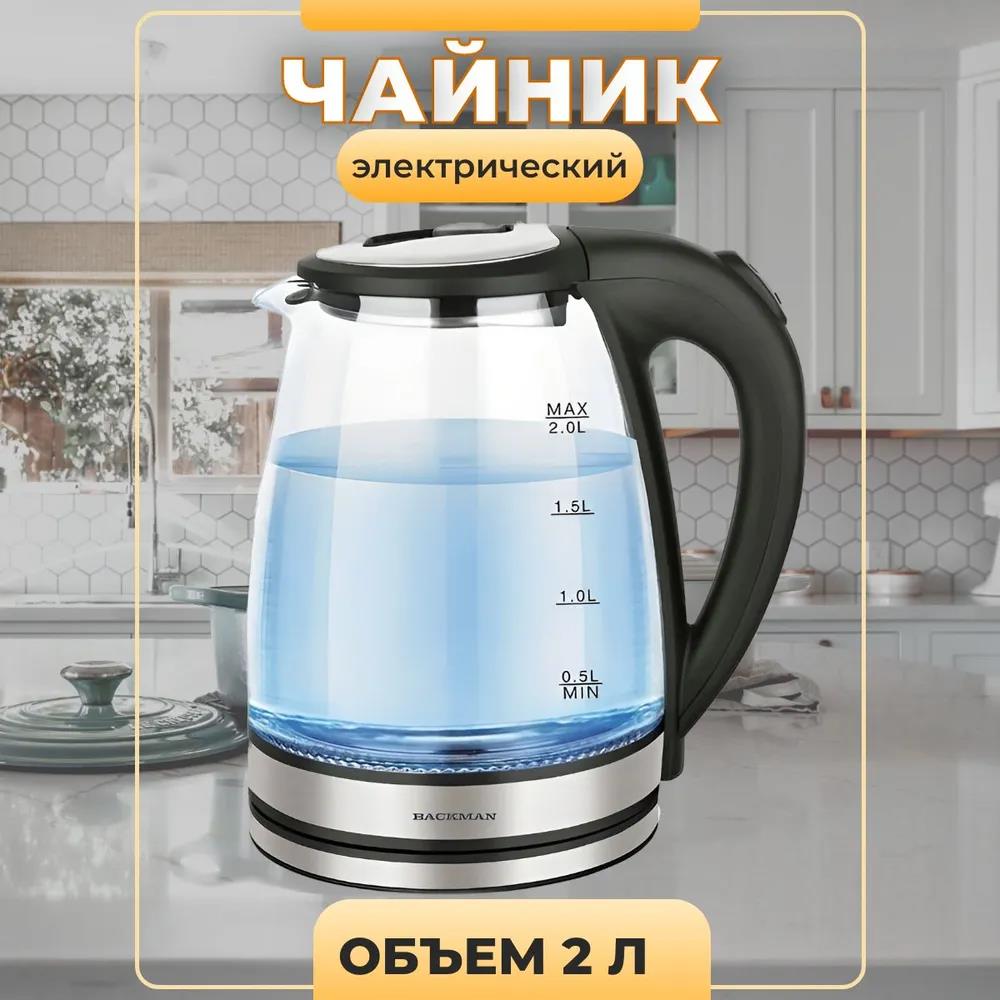 Электрический чайник BACKMAN BM-70005 (2200 Вт/2 л /стекло, пластик/прозрачный, серебристый) - Интернет-магазин Позитив: бытовая техника, электроника, товары для дома и др.
