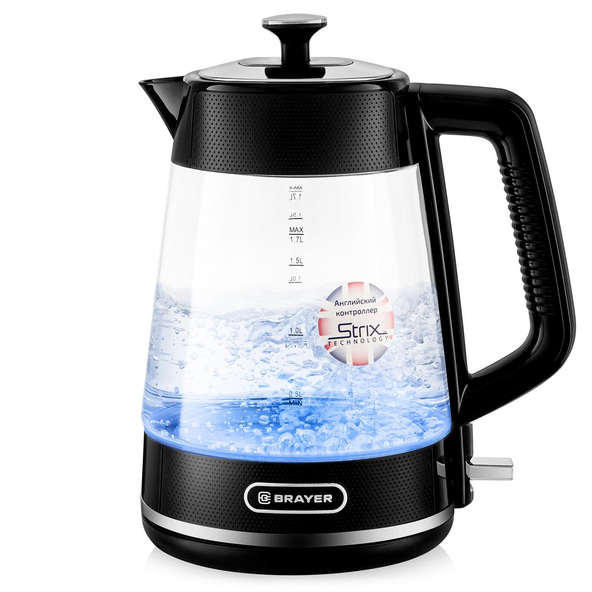 Электрический чайник Brayer BR1071 (2200 Вт/1,7 л /стекло, пластик/черный) - Интернет-магазин Позитив: бытовая техника, электроника, товары для дома и др.