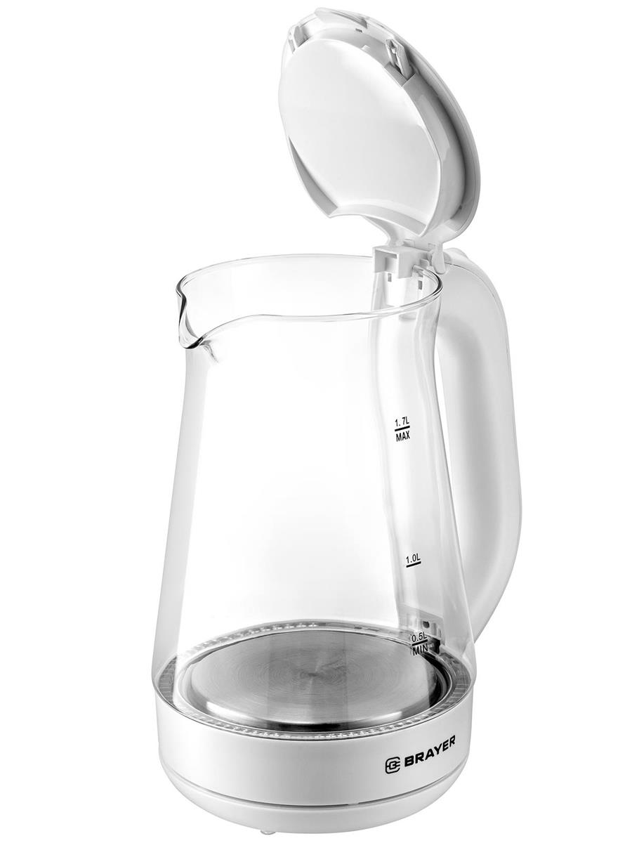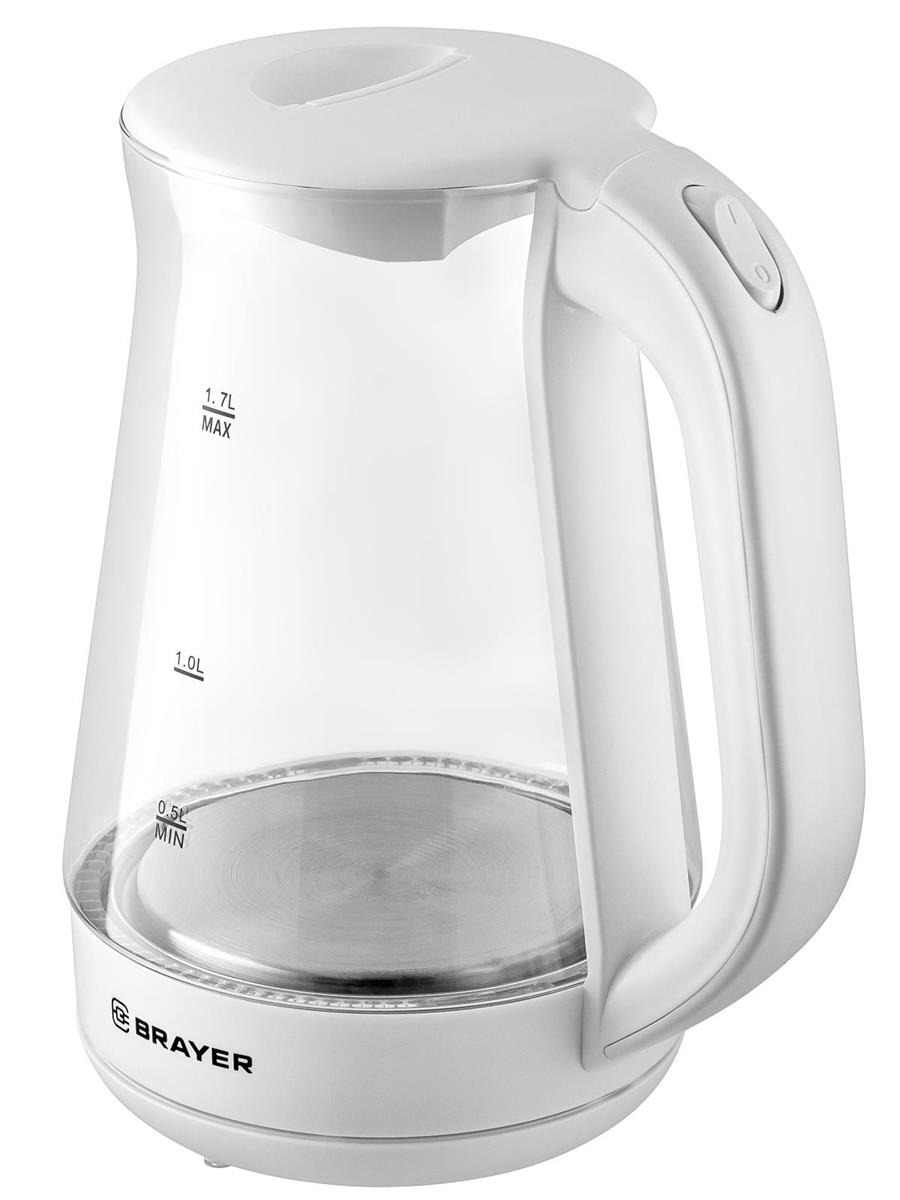 Электрический чайник Brayer BR6112WH (2200 Вт/1,7 л /стекло/прозрачный, белый) - Интернет-магазин Позитив: бытовая техника, электроника, товары для дома и др.