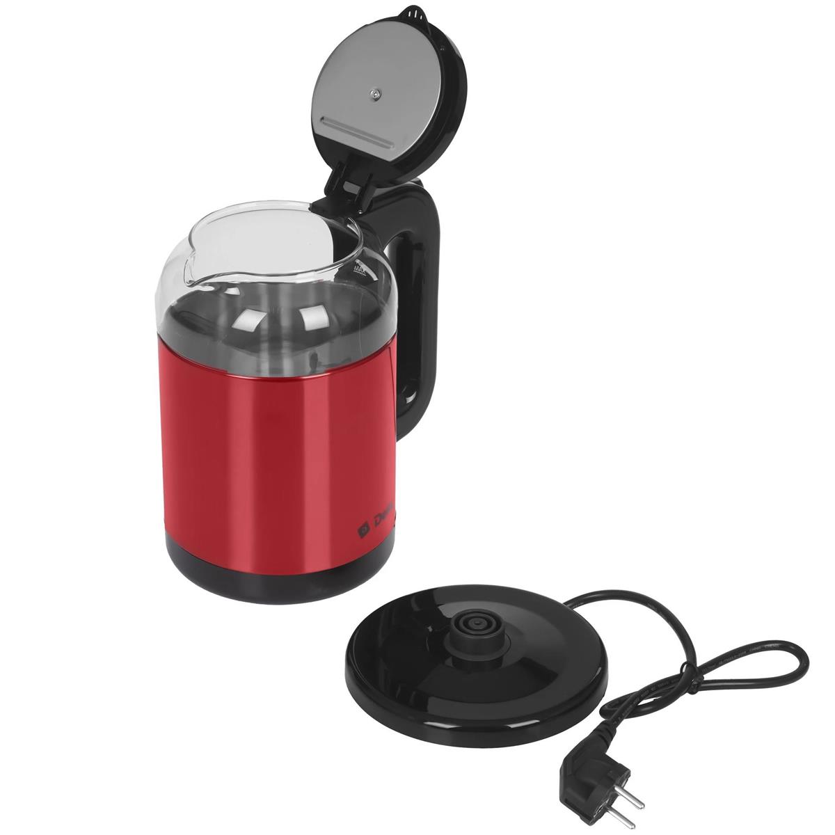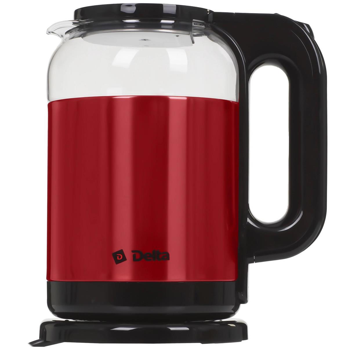 Электрический чайник DELTA DL-1115 (1500 Вт/1,8 л /стекло, нержавеющая сталь/красный)