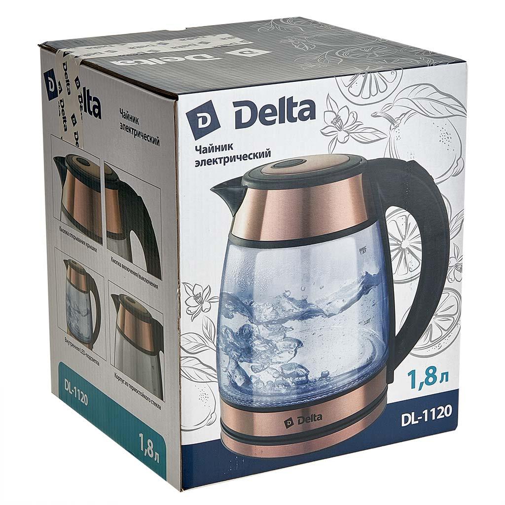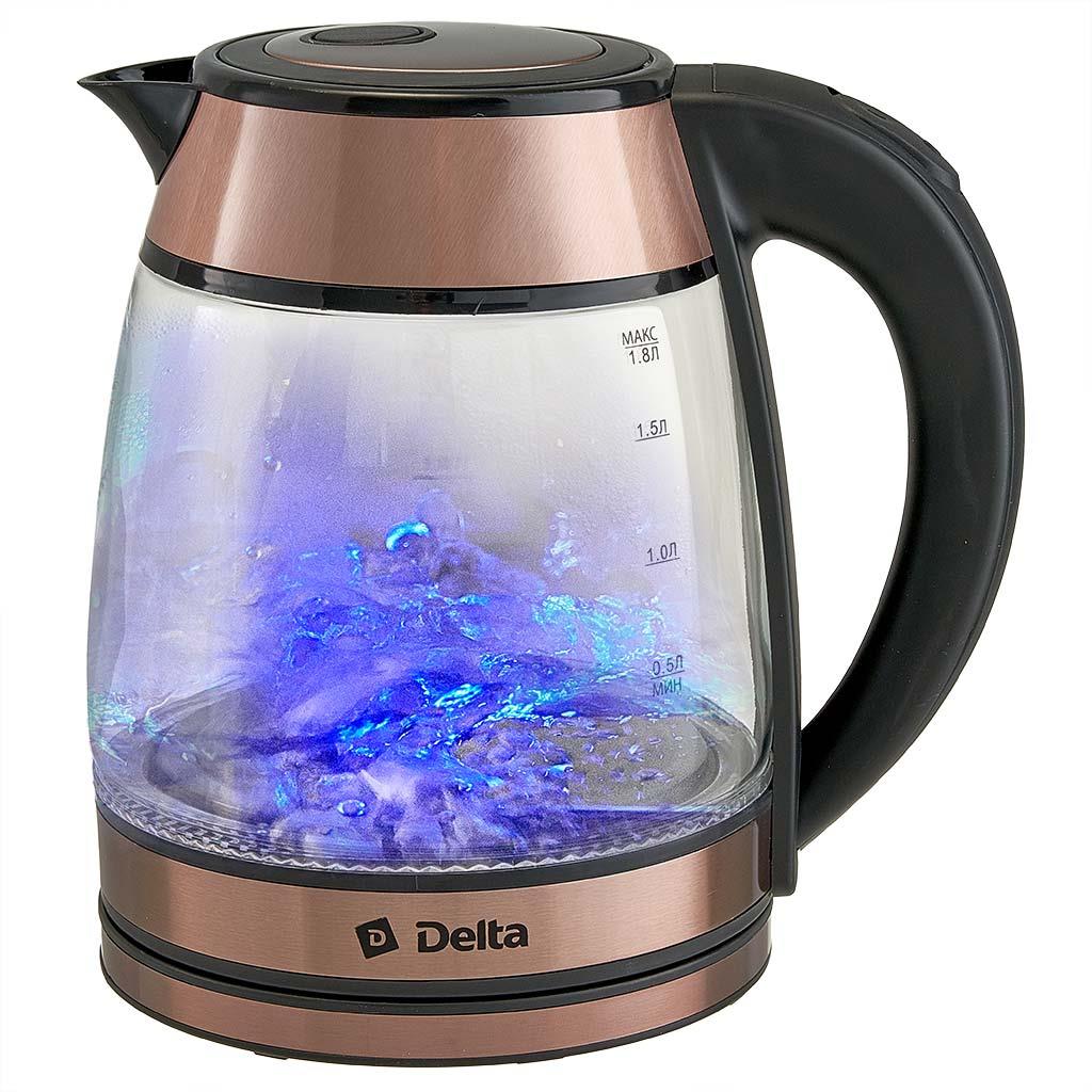 Электрический чайник DELTA DL-1120 (1500 Вт/1,8 л /стекло/медный, прозрачный) - Интернет-магазин Позитив: бытовая техника, электроника, товары для дома и др.