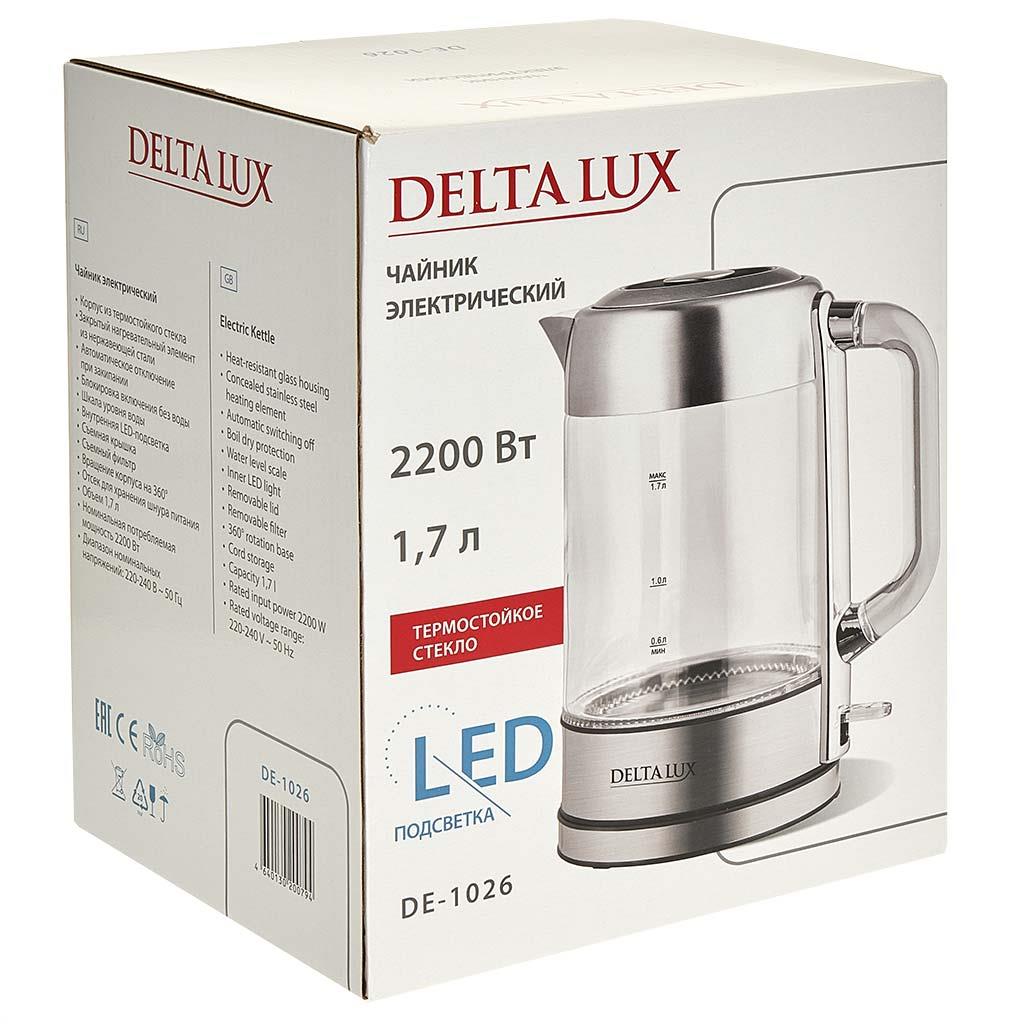 Электрический чайник DELTA LUX DE-1026 (2200 Вт/1,7 л /стекло/сталь, прозрачный) - Интернет-магазин Позитив: бытовая техника, электроника, товары для дома и др.