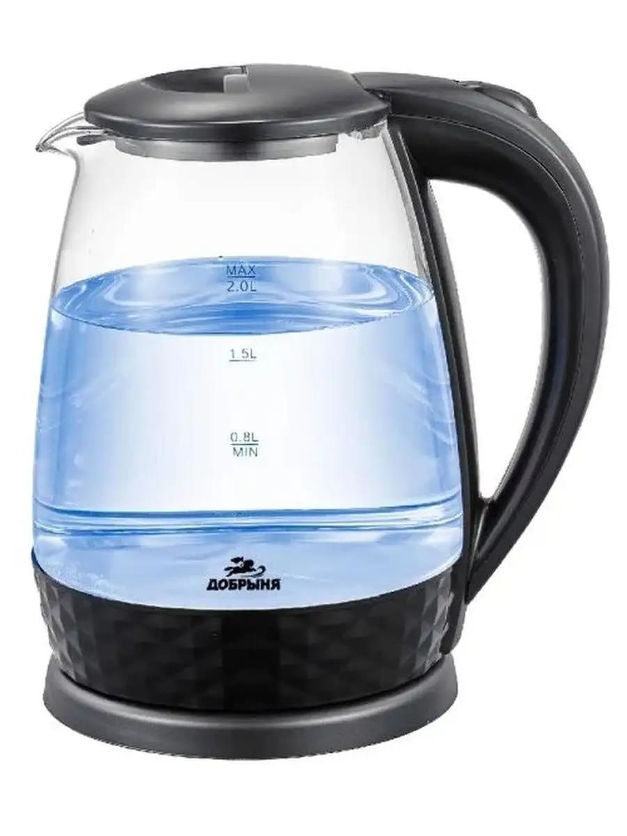 Электрический чайник Добрыня DO-1252 (1800 Вт/1,8 л /стекло/прозрачный, черный) - Интернет-магазин Позитив: бытовая техника, электроника, товары для дома и др.