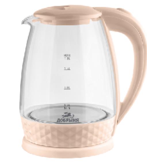 Электрический чайник Добрыня DO-1252C (1800 Вт/1,8 л /стекло, пластик/бежевый, прозрачный)