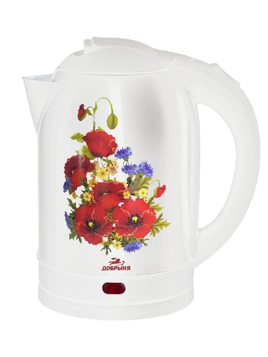 Электрический чайник Добрыня DO-1257 (2,0л) 2000Вт нжс Маки на белом (2200 Вт/2 л /металл/белый, рисунок) - Интернет-магазин Позитив: бытовая техника, электроника, товары для дома и др.