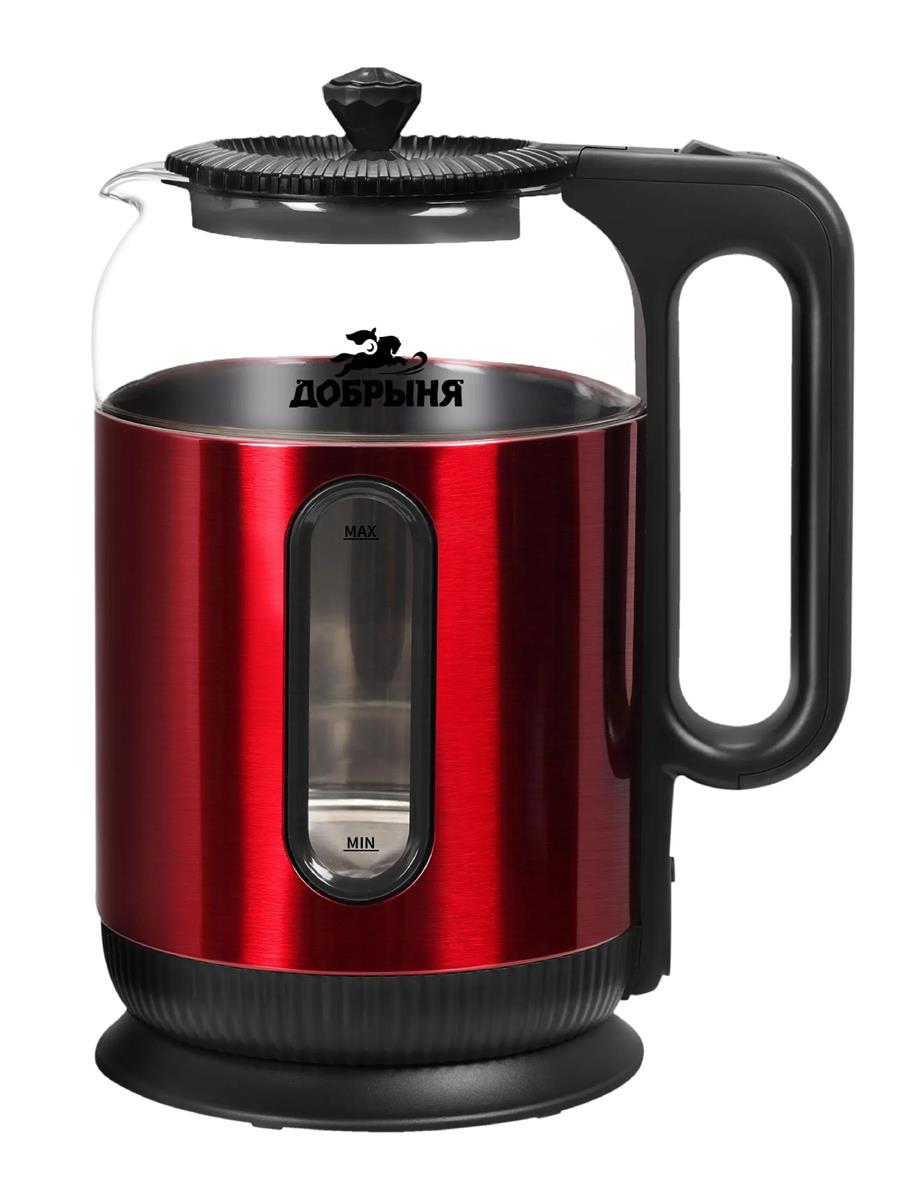 Электрический чайник Добрыня DO-1270R (1500 Вт/1,6 л /стекло, металл/красный, прозрачный) - Интернет-магазин Позитив: бытовая техника, электроника, товары для дома и др.