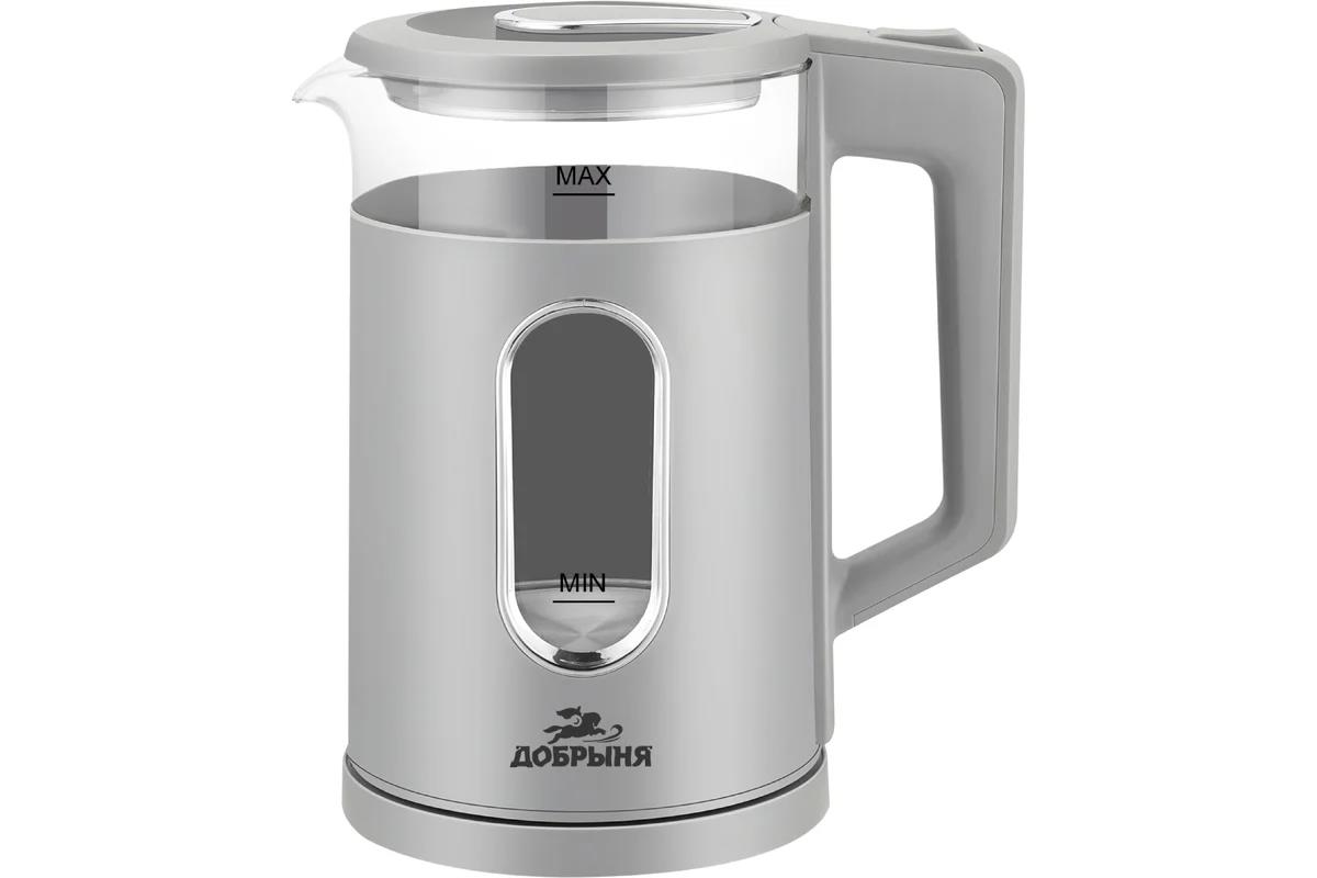 Электрический чайник Добрыня DO-1271G (1500 Вт/1,8 л /стекло, пластик/серый, прозрачный) - Интернет-магазин Позитив: бытовая техника, электроника, товары для дома и др.
