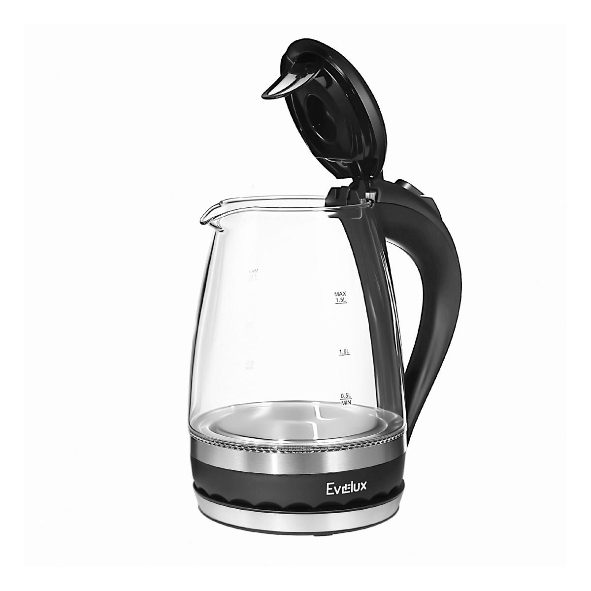 Электрический чайник Evelux EWK 0904 G (2200 Вт/1,5 л /стекло/прозрачный, черный, серебристый) - Интернет-магазин Позитив: бытовая техника, электроника, товары для дома и др.