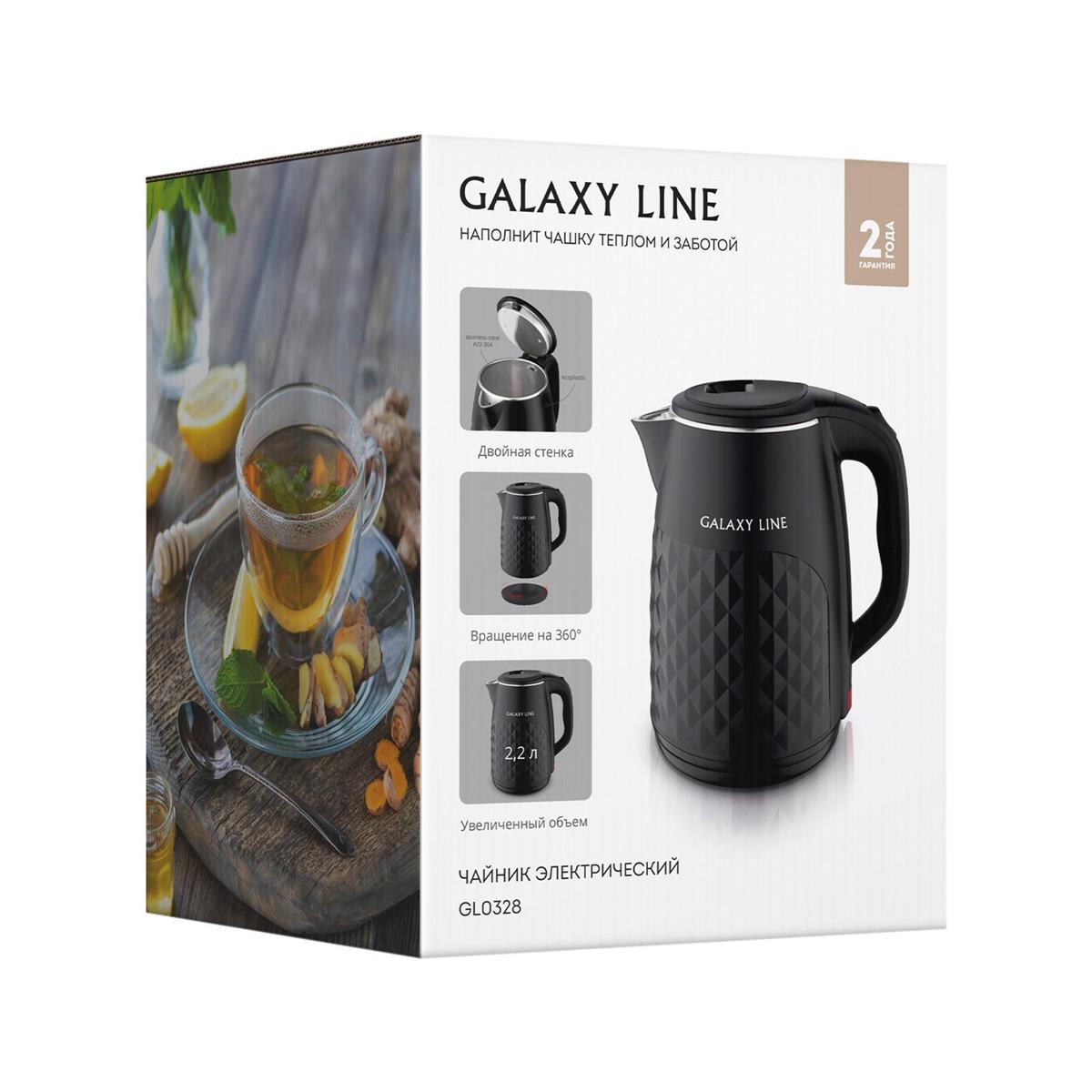 Электрический чайник Galaxy GL 0328 (2000 Вт/2,2 л /пластик, нержавеющая сталь/черный)