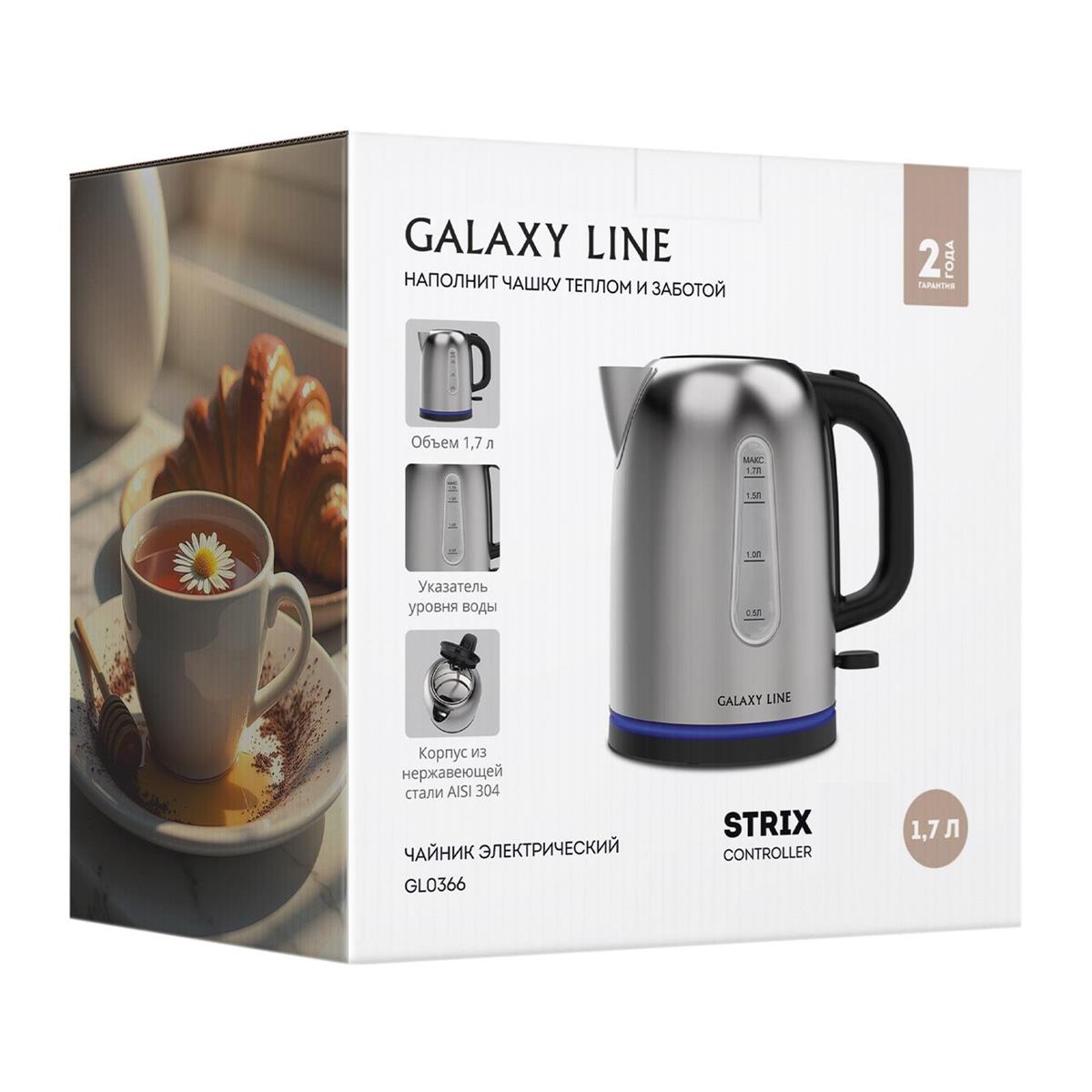 Электрический чайник GALAXY LINE GL 0366 (2200 Вт/1,7 л /нержавеющая сталь/черный, серебристый) - Интернет-магазин Позитив: бытовая техника, электроника, товары для дома и др.