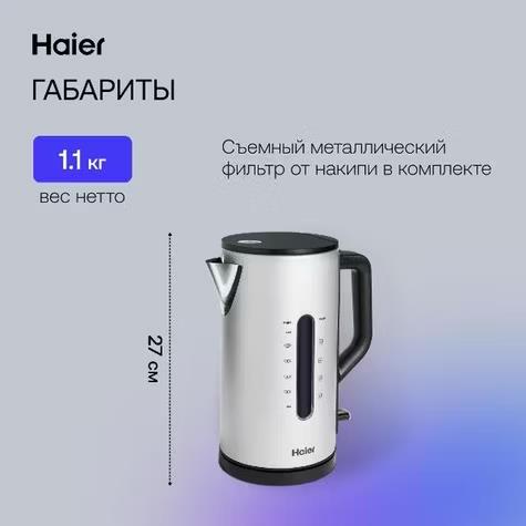 Электрический чайник Haier HK-601 (3000 Вт/1,7 л /нержавеющая сталь/матовое серебро) - Интернет-магазин Позитив: бытовая техника, электроника, товары для дома и др.