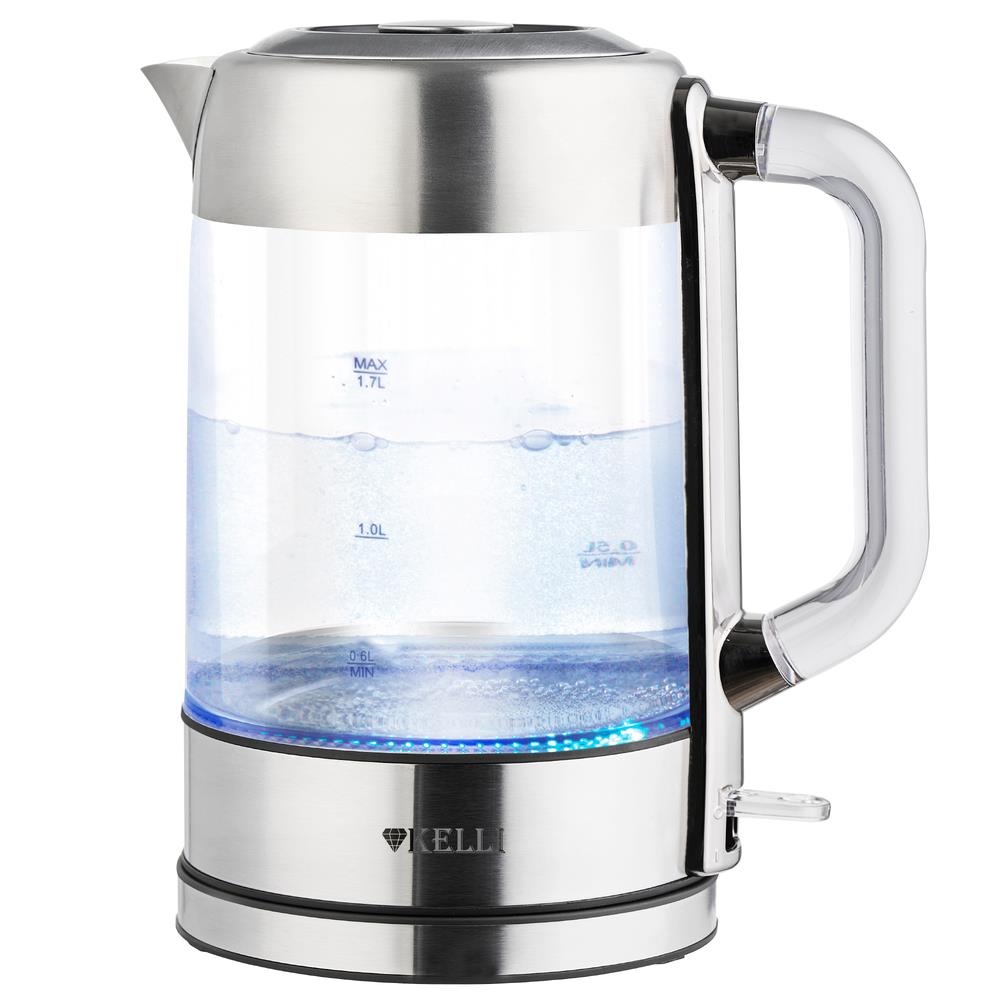 Электрический чайник Kelli KL-1813 (2200 Вт/1,7 л /стекло/прозрачный, серебристый) - Интернет-магазин Позитив: бытовая техника, электроника, товары для дома и др.
