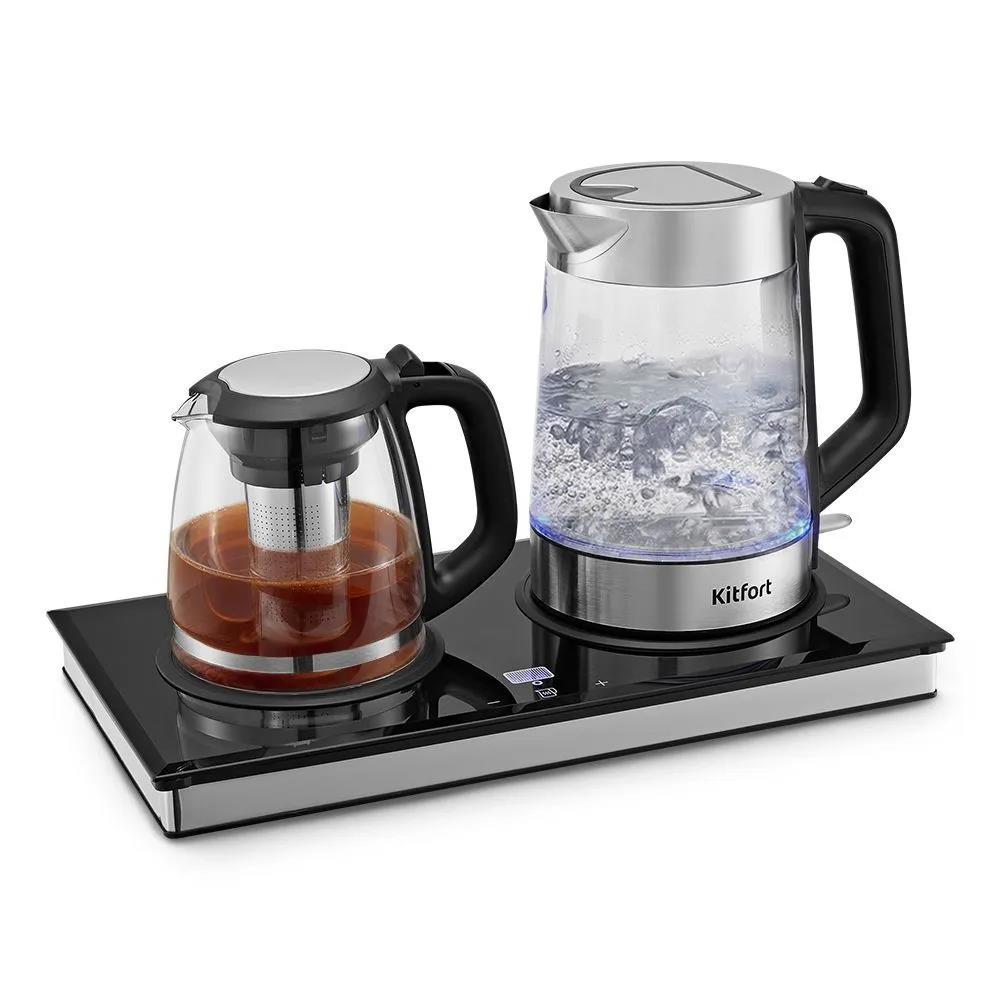 Электрический чайник Kitfort Чайный набор КТ-6776 (2200 Вт/1,8 л /стекло, пластик, нержавеющая сталь/прозрачный, черный, серебристый) - Интернет-магазин Позитив: бытовая техника, электроника, товары для дома и др.