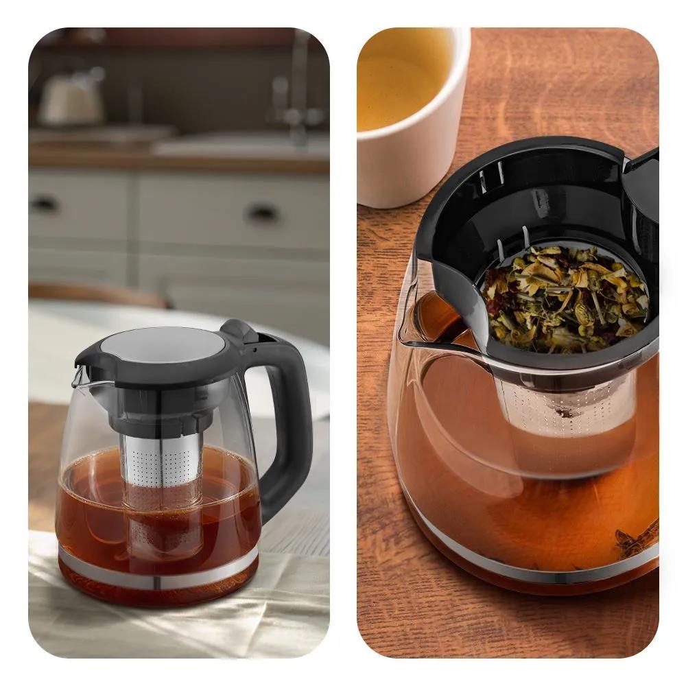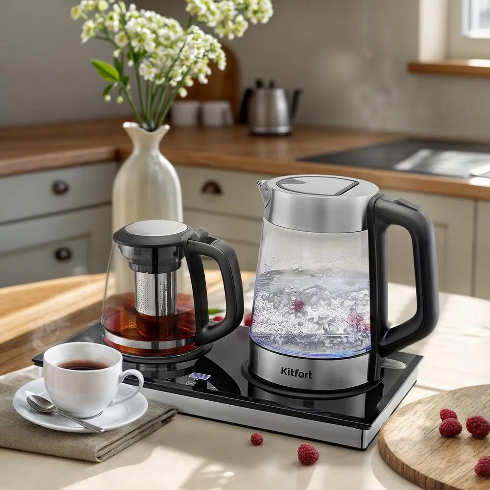 Электрический чайник Kitfort Чайный набор КТ-6776 (2200 Вт/1,8 л /стекло, пластик, нержавеющая сталь/прозрачный, черный, серебристый)