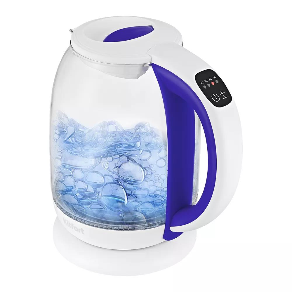 Электрический чайник Kitfort КТ-6140-1 (2200 Вт/1,7 л /стекло, пластик/белый, фиолетовый) - Интернет-магазин Позитив: бытовая техника, электроника, товары для дома и др.