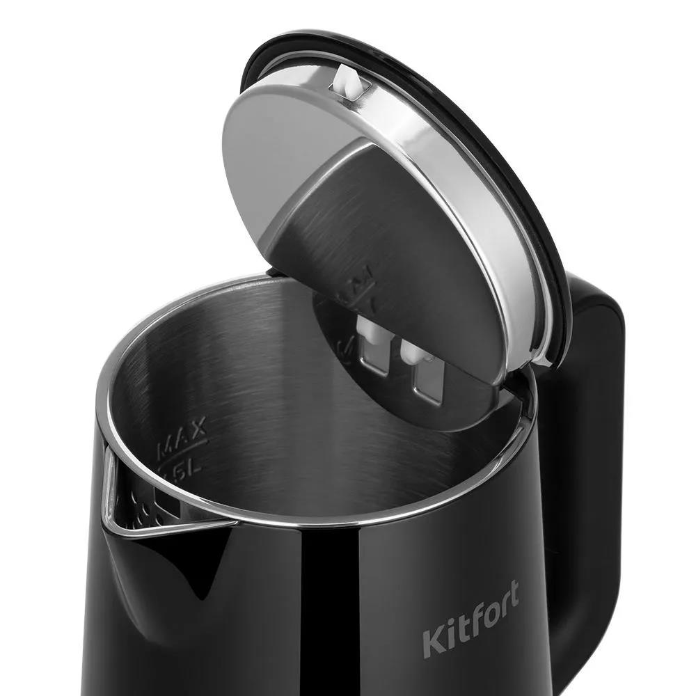 Электрический чайник Kitfort КТ-6186 (1650 Вт/1,5 л /нержавеющая сталь/черный) - Интернет-магазин Позитив: бытовая техника, электроника, товары для дома и др.