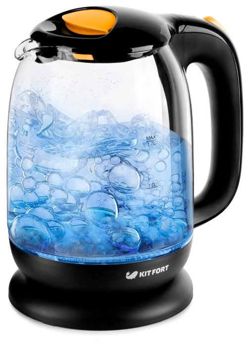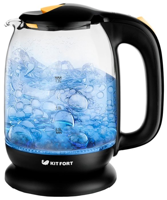 Электрический чайник Kitfort KT-625-4 (2200 Вт/1,7 л /стекло, пластик/желтый, прозрачный) - Интернет-магазин Позитив: бытовая техника, электроника, товары для дома и др.