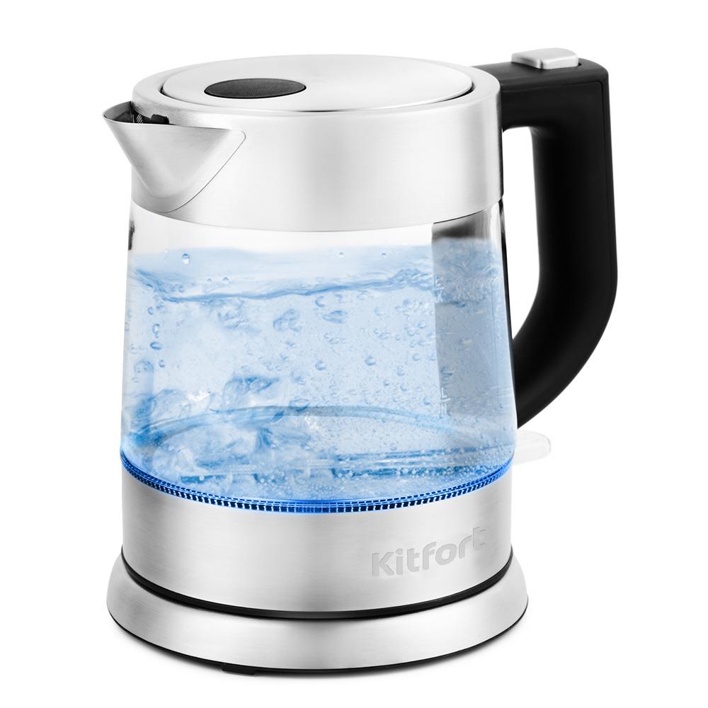 Электрический чайник Kitfort KT-647 (2200 Вт/1 л /стекло/серебристый) - Интернет-магазин Позитив: бытовая техника, электроника, товары для дома и др.