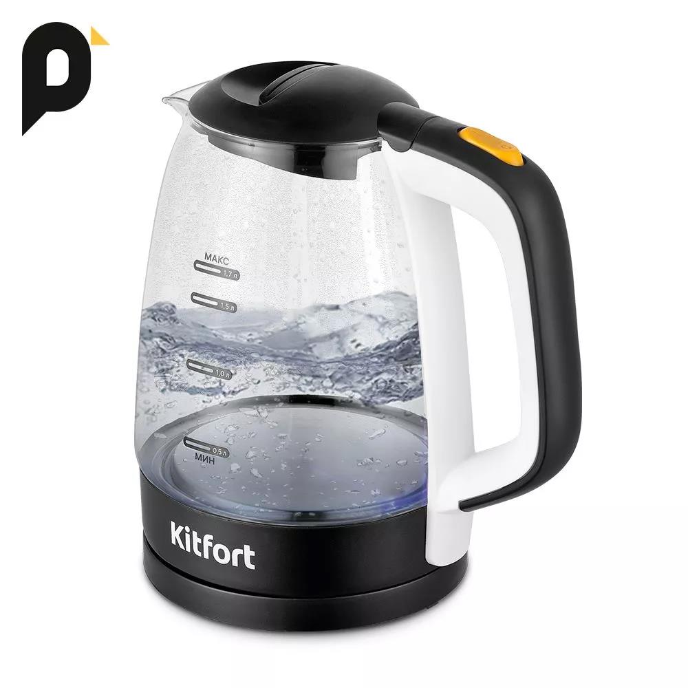 Электрический чайник Kitfort КТ-6632 (2200 Вт/1,7 л /стекло, пластик/прозрачный, черный) - Интернет-магазин Позитив: бытовая техника, электроника, товары для дома и др.