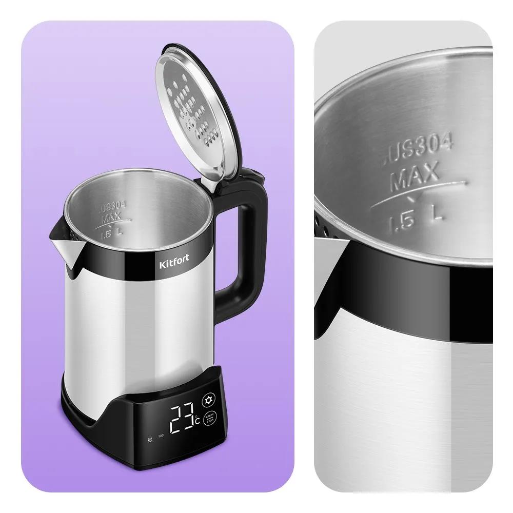 Электрический чайник Kitfort КТ-6691 (1500 Вт/1,5 л /пластик, нержавеющая сталь/черный, серебристый) - Интернет-магазин Позитив: бытовая техника, электроника, товары для дома и др.