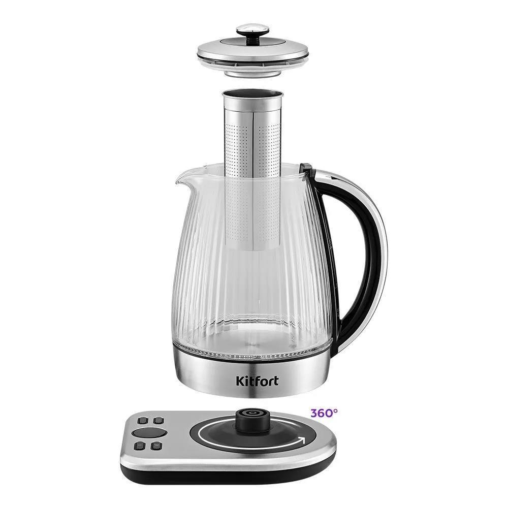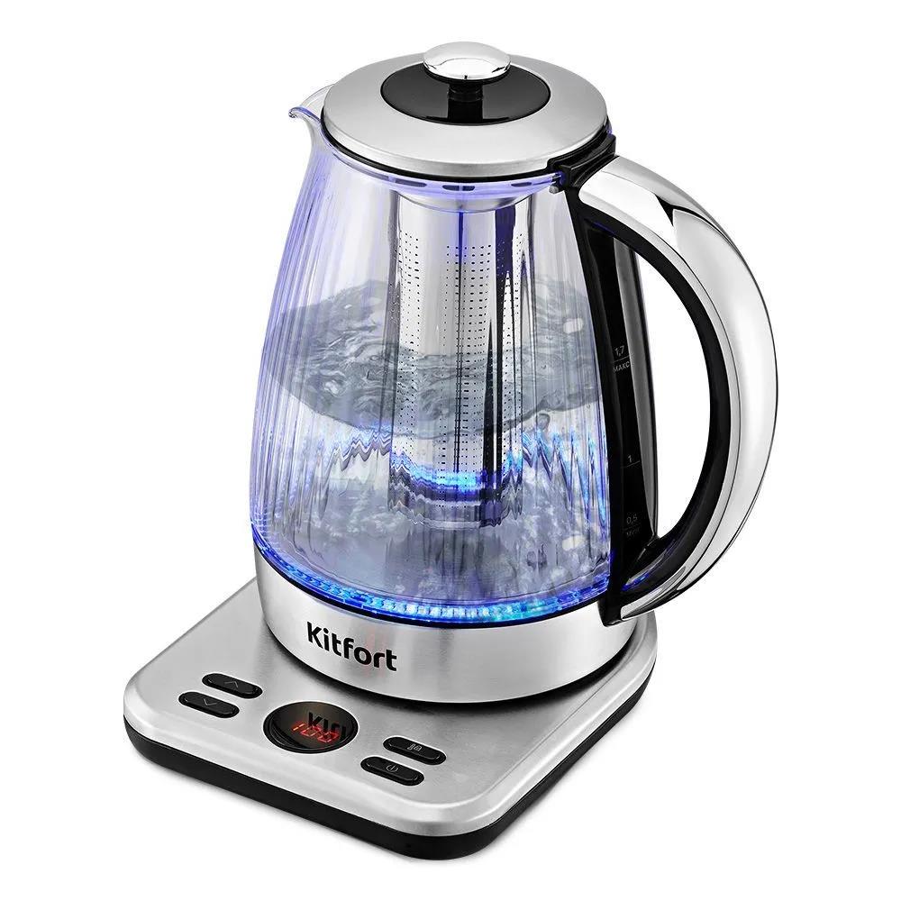 Электрический чайник Kitfort КТ-6711 (2000 Вт/1,7 л /стекло, пластик/прозрачный, серебристый) - Интернет-магазин Позитив: бытовая техника, электроника, товары для дома и др.