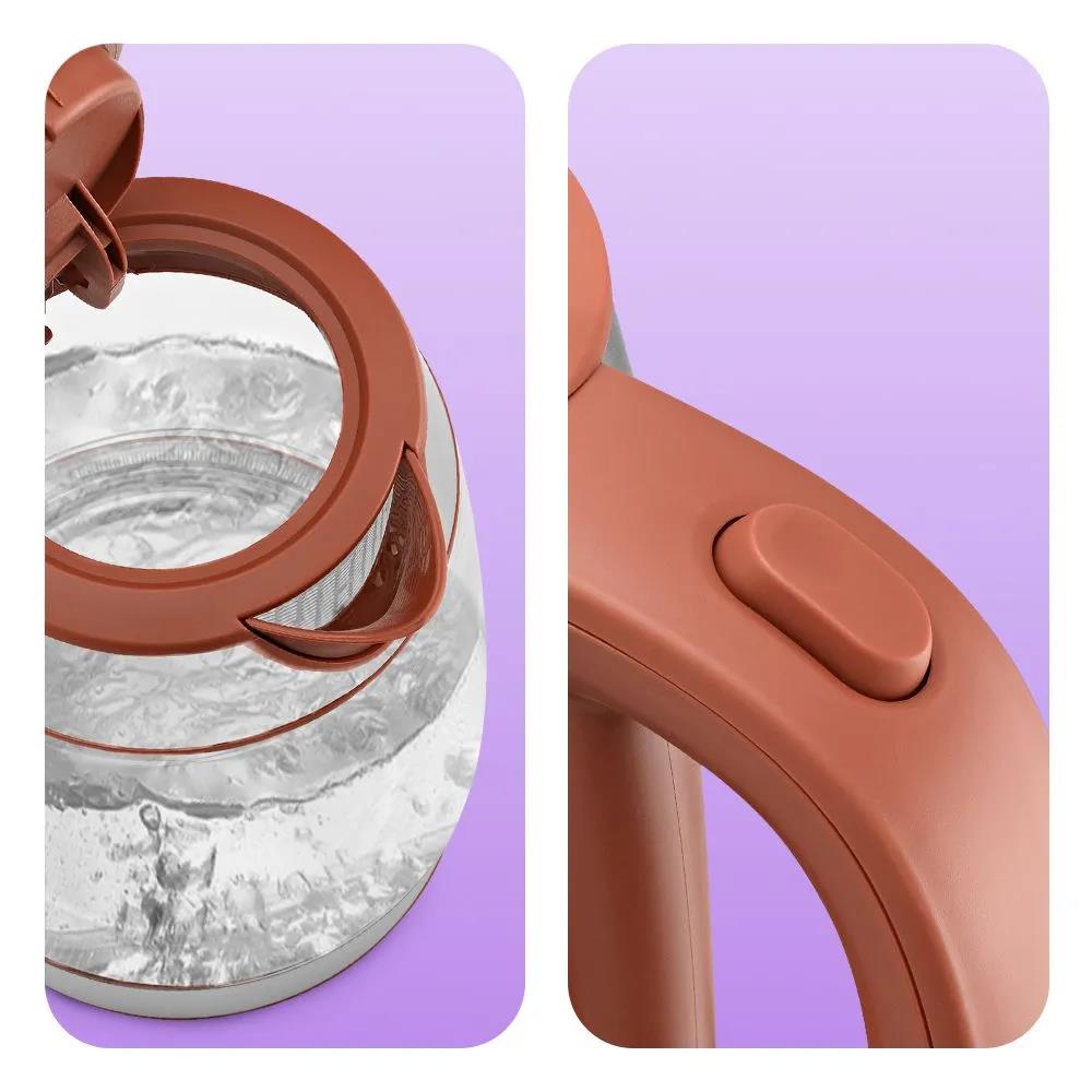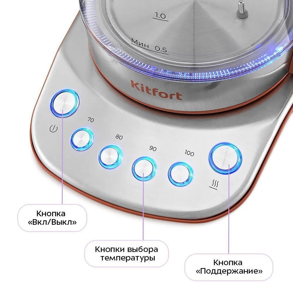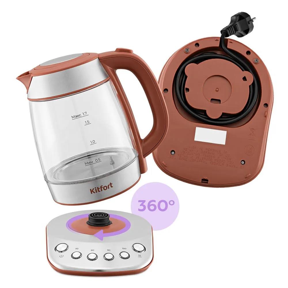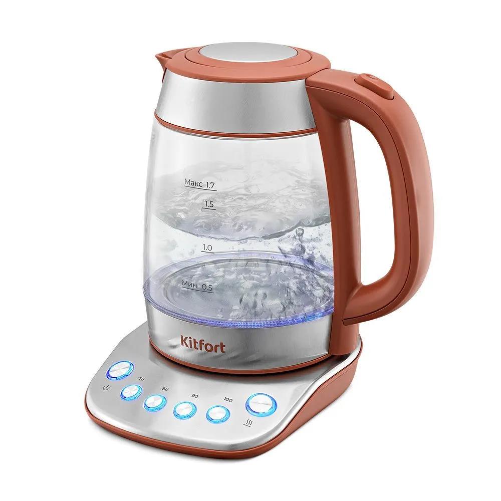 Электрический чайник Kitfort КТ-6787 (2200 Вт/1,7 л /стекло, металл, пластик/коричневый, прозрачный, серебристый) - Интернет-магазин Позитив: бытовая техника, электроника, товары для дома и др.