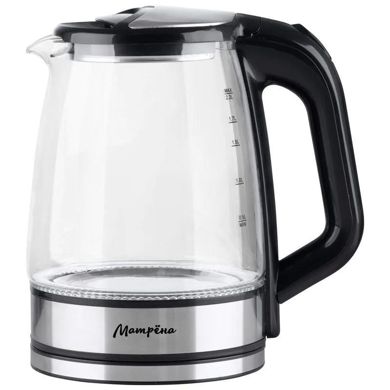 Электрический чайник МАТРЁНА MA-155 (2200 Вт/2,2 л /стекло, пластик/прозрачный, черный) - Интернет-магазин Позитив: бытовая техника, электроника, товары для дома и др.